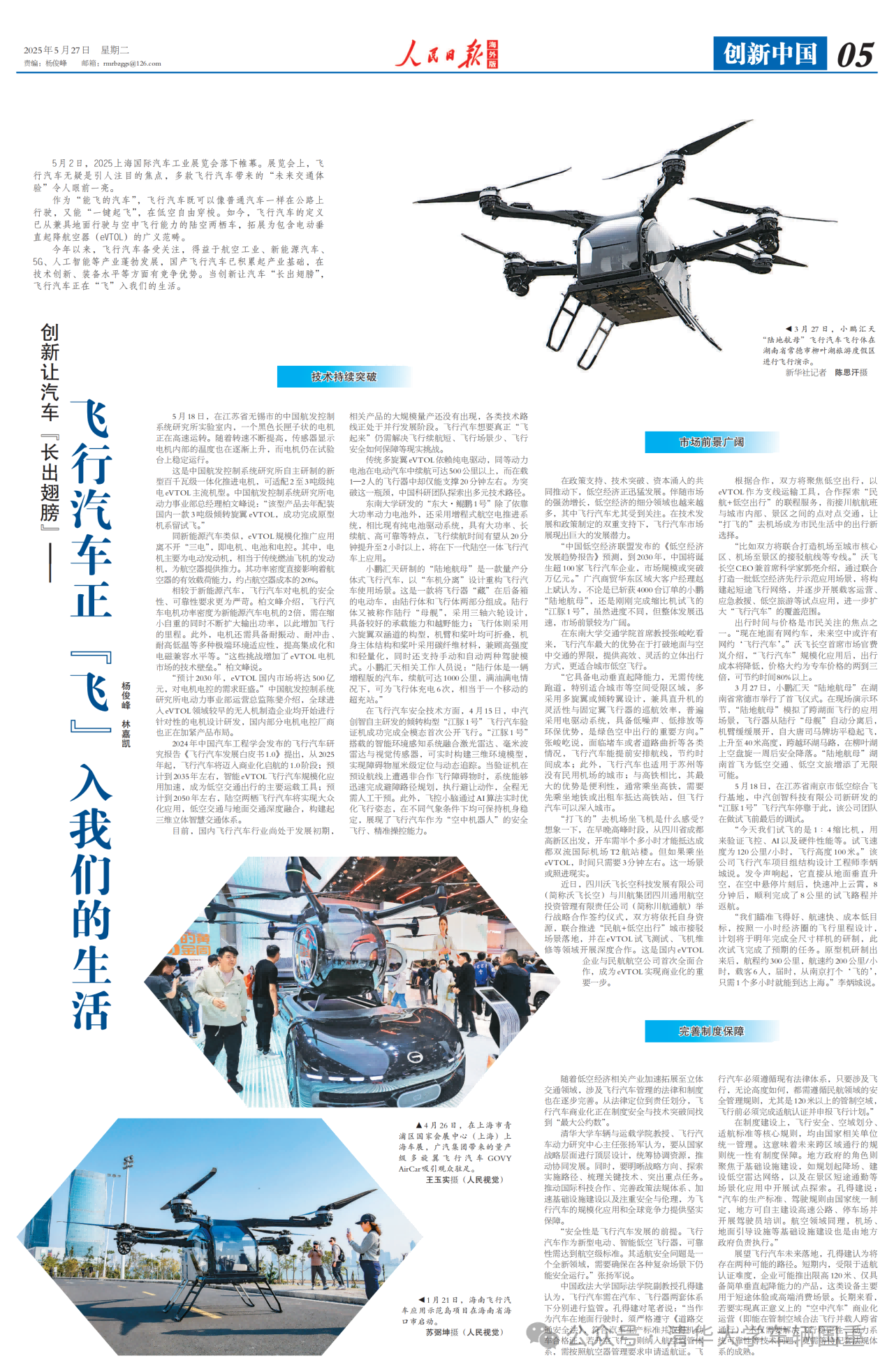 继1月17日《人民日报》国际科技专版刊发了清华大学车辆与运载学院教授、智能绿色车辆与交通全国重点实验室副主任、飞行汽车动力研究中心主任张扬军《飞行汽车,正向我们“飞”来》文章后,5月27日,《人民日报海外版》创新中国专版再度聚焦飞行汽车领域,刊发题为《创新让汽车“长出翅膀”——飞行汽车正“飞”入我们的生活》的文章。